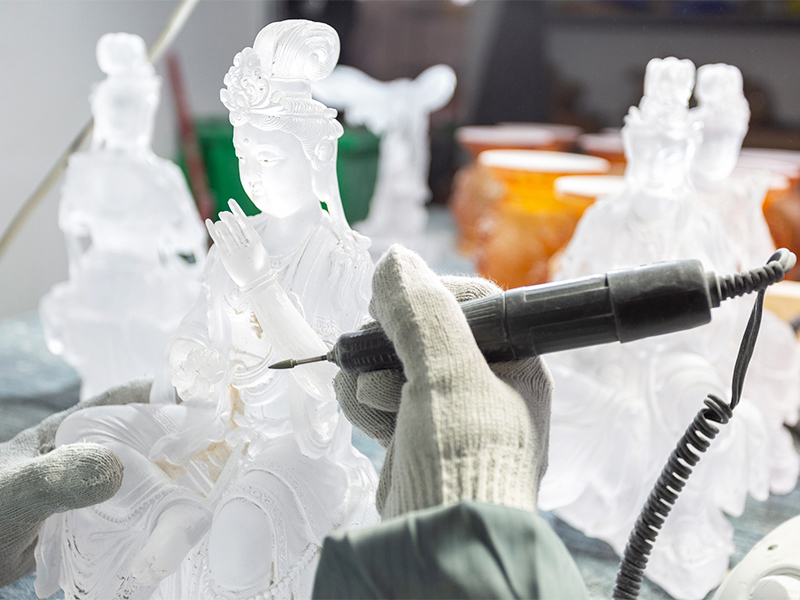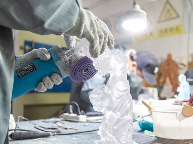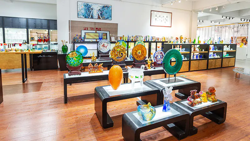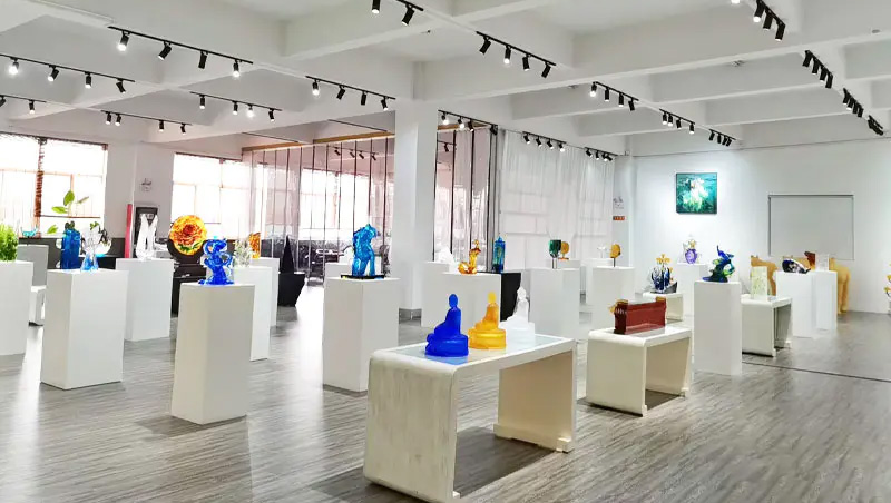 Umelecké diela zo skla sa postupne vyvinuli z tradičných remeselných darčekov až po dekoratívny nábytok, budhistickú kultúru, krištáľový riad a módne šperky. Výrobná základňa spoločnosti sa nachádza v krásnom a prosperujúcom vodnom meste Jinxi v Kunshane v provincii Jiangsu. Jeho súčasťou je výskumný a vývojový priestor na výrobu skla s rozlohou 35 000 metrov štvorcových. Zariadenie je vybavené nezávislými konštrukčnými schopnosťami, technikami modelovania z hliny a technologickými výskumnými a vývojovými zdrojmi, ktoré preukazujú vyspelé zručnosti v oblasti vývoja produktov a výrobných procesov.