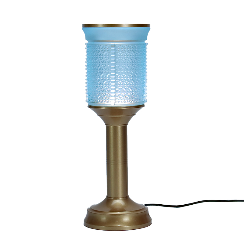Táto súprava svetlomodrých sklenených budhistických oltárov zo série Ruyi je naozaj krásna! Svetlomodrá farba dáva ľuďom pocit pokoja a sviežosti, akoby do nej integrovala jasnosť oblohy. Vynikajúce rezbárske spracovanie je plne zobrazené na skle a zdá sa, že každý vzor rozpráva jemný príbeh. Zlaté zdobenie dodáva nádych luxusu a slávnostnosti. Kadidlo v strede je naplnené kadidlom a dym stúpa a vytvára pokojnú atmosféru. Okolo rozmiestnené oranžové plody dodávajú celému obrazu nádych žiarivej farby, plnej vitality a elánu. Či už ako dekorácia alebo praktický predmet, táto sada produktov preukázala vysokú umeleckú hodnotu, ktorá lahodí oku a je plná chvály.
