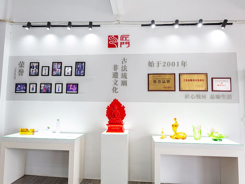 Umelecké diela zo skla sa postupne vyvinuli z tradičných remeselných darčekov až po dekoratívny nábytok, budhistickú kultúru, krištáľový riad a módne šperky. Výrobná základňa spoločnosti sa nachádza v krásnom a prosperujúcom vodnom meste Jinxi v Kunshane v provincii Jiangsu. Jeho súčasťou je výskumný a vývojový priestor na výrobu skla s rozlohou 35 000 metrov štvorcových. Zariadenie je vybavené nezávislými konštrukčnými schopnosťami, technikami modelovania z hliny a technologickými výskumnými a vývojovými zdrojmi, ktoré preukazujú vyspelé zručnosti v oblasti vývoja produktov a výrobných procesov.