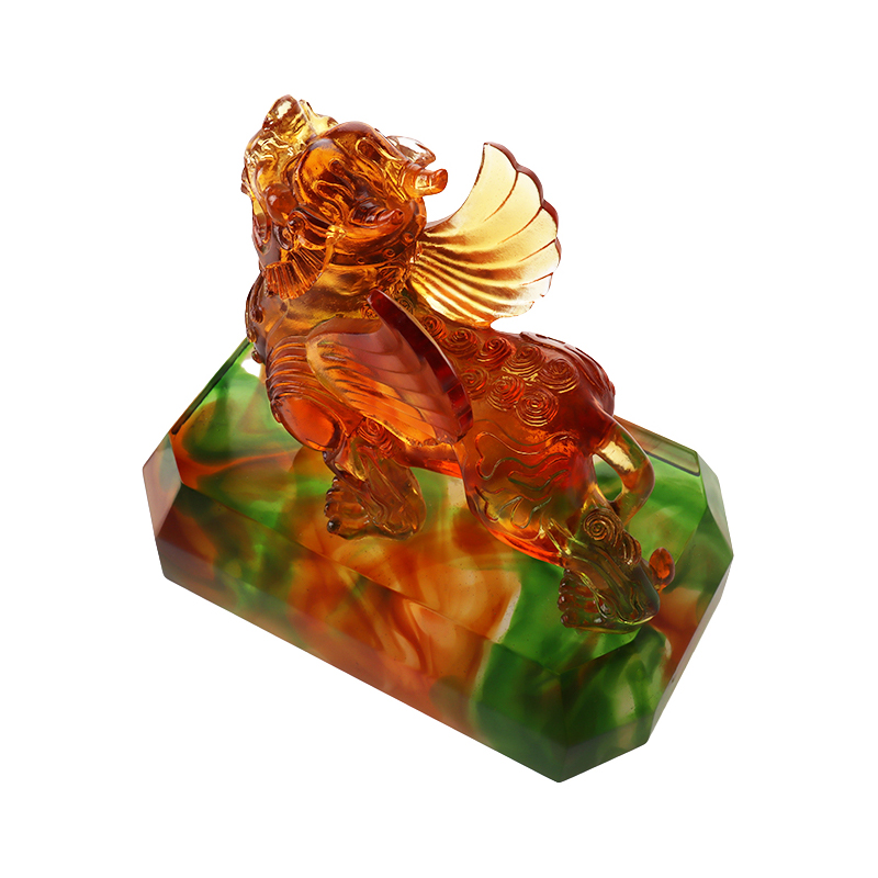 Z hľadiska remeselného spracovania je textúra zaskleného skla krištáľovo čistá. V tejto práci je priehľadnosť a lesk zaskleného skla, vďaka čomu je obraz šelmy trojrozmernejší. Či už ako dekorácia alebo ako kultúrny symbol, toto mýtické zviera z farebnej glazúry je nepochybne pokladom, ktorý dokáže preukázať vkus a umeleckú hodnotu. Žiaduce spája tajomnú silu bájnej šelmy s krásou farebnej glazúry, ktorá lahodí oku.