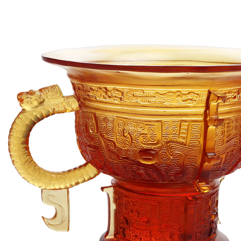 Z remeselného hľadiska má samotná farebná glazúra vlastnosti krištáľovej čistoty. V tomto čínskom statíve s rukoväťou dračích uší a tŕňovým vzorom dosiahli priehľadnosť a lesk farebnej glazúry veľmi vysokú úroveň, vďaka čomu statív vyzerá rafinovanejšie. Každý detail, či už je to rukoväť dračieho ucha alebo vzor tela statívu, bol starostlivo vyrezaný, čo odráža vynikajúce zručnosti remeselníkov a hlboké pochopenie tradičnej kultúry.
