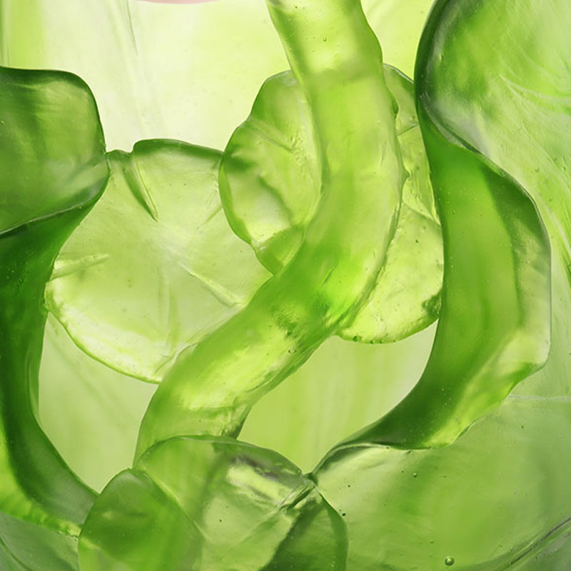 Tieto sklenené vázy sú jednoducho majstrovské umelecké diela. Sú navrhnuté s prvkom lotosu a celkový štýl je svieži a prirodzený. Materiál skla dodáva váze krištáľovo čistú textúru a zelené lotosové listy a ružový lotos pôsobia ako živé, akoby v nich stuhla krása prírody.